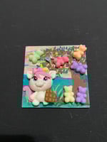 Note each magnet is sold separately. These hand painted 3 by 3 inch mixed media magnets are unique and one of a kind. Each one has been painted with acrylics and decorated with glass and rhinestones.