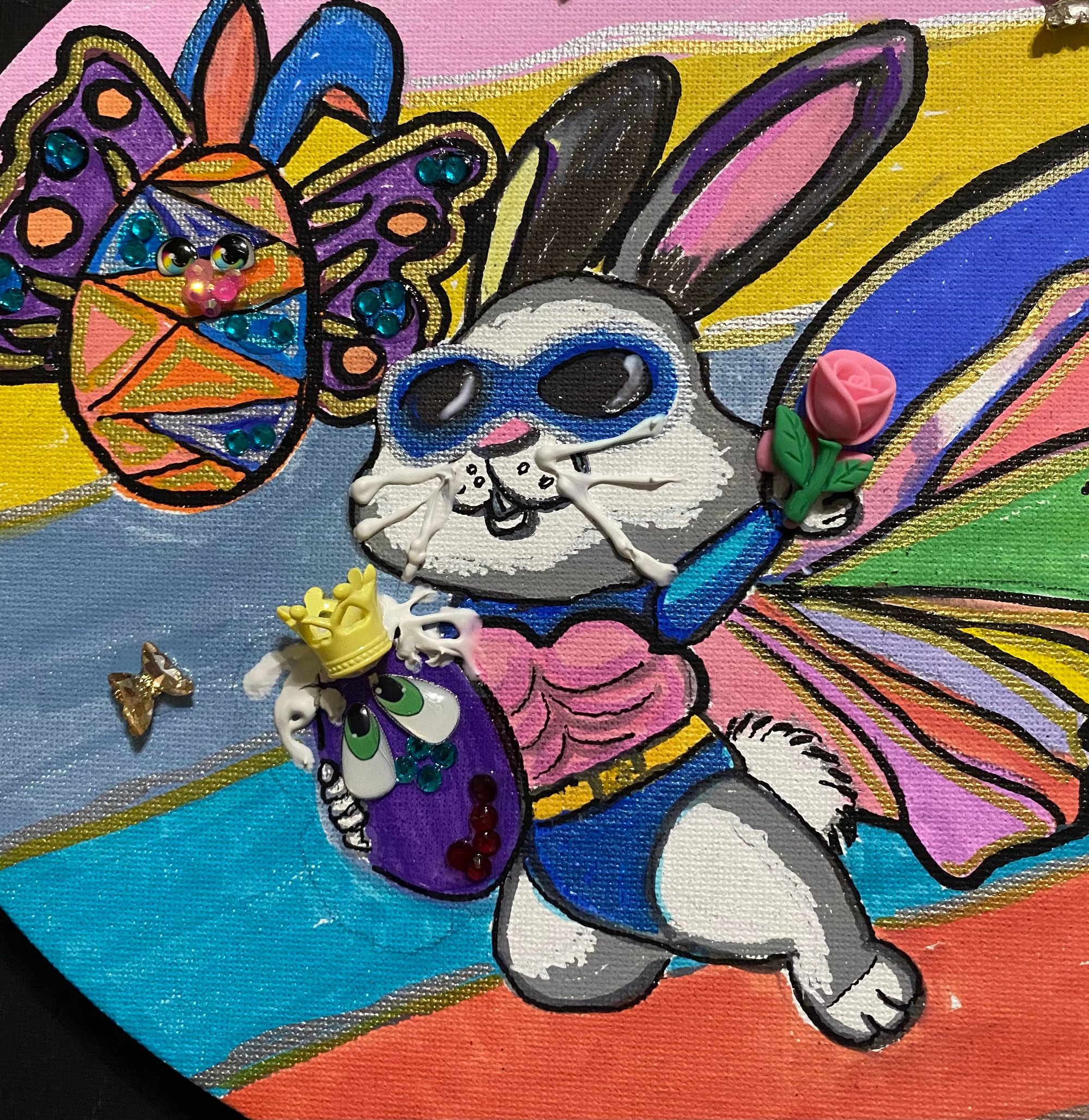 Wonder Rabbit mixed media painting.